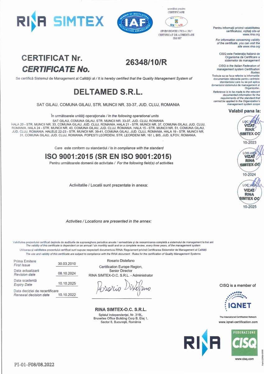 Deltamed operates in accordance with the following quality standards: